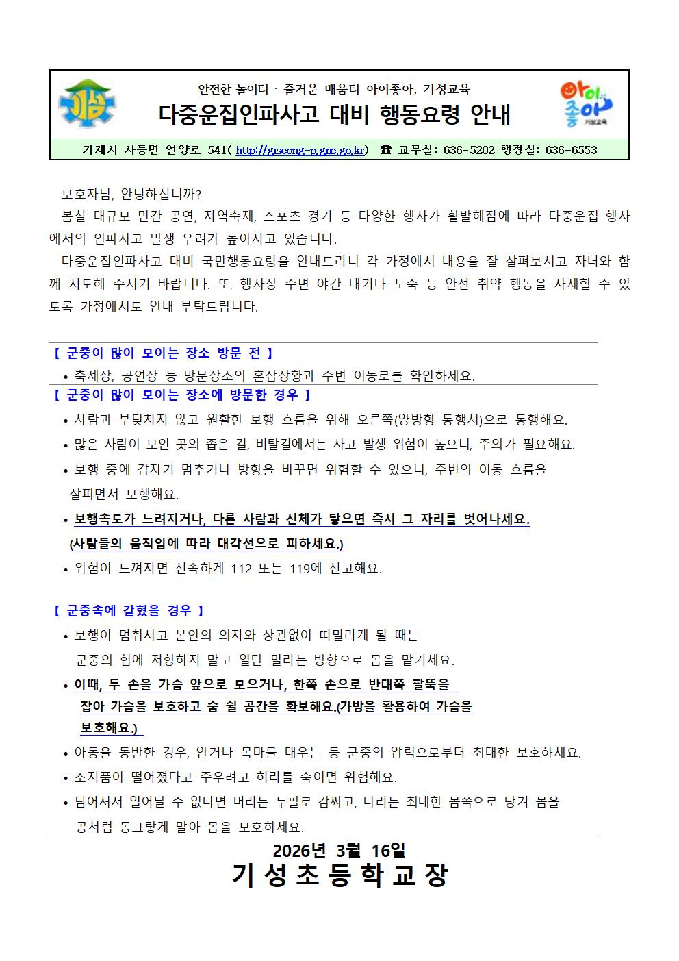 2026학년도 다중운집인파사고 대비 행동요령 안내