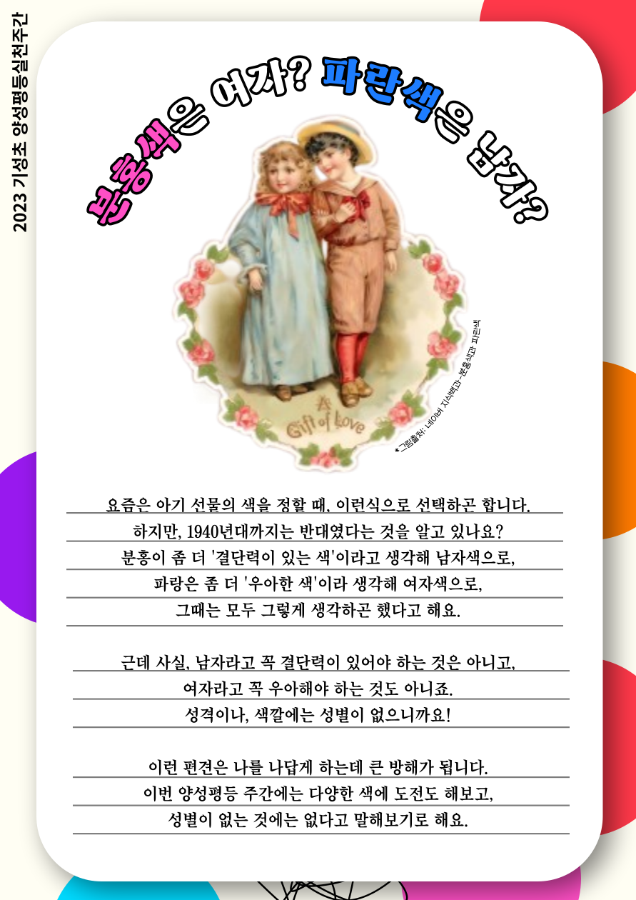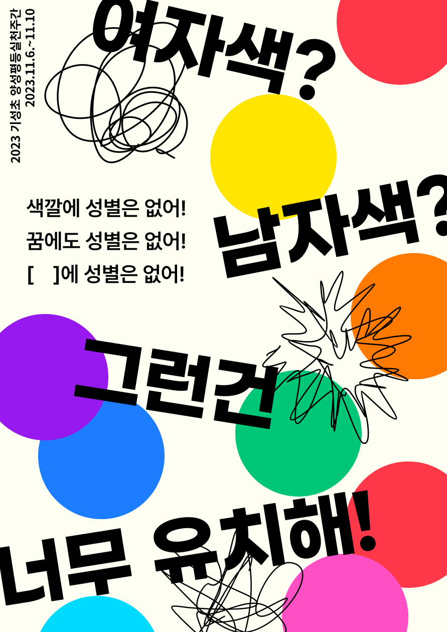 다음 주(2023.11.6~11.30)는 기성초등학교 양성평등 실천주간 입니다.