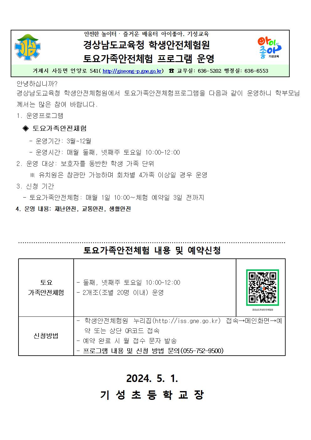 [경상남도교육청 학생안전체험원]2024.토요가족안전체험 프로그램 운영 안내