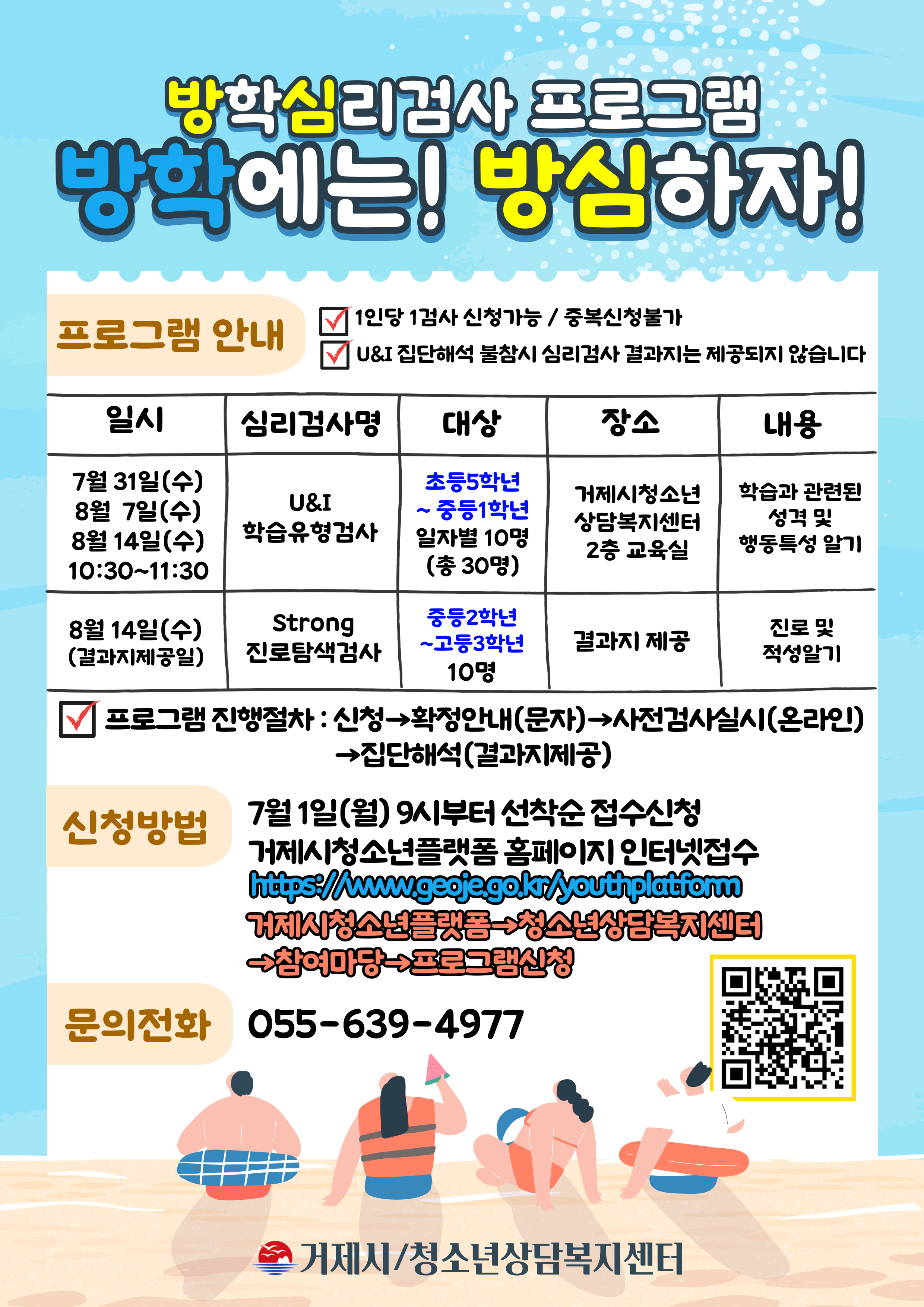 ≪방학심리검사 및 청소년 성장 프로그램≫을 운영합니다. 학생들의 많은 참여 바랍니다.