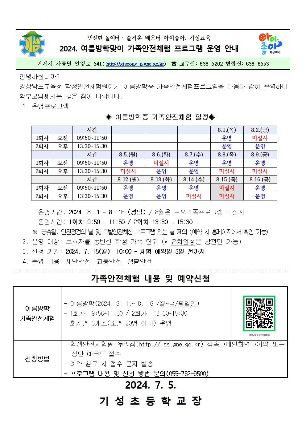 2024. 여름방학맞이 가족안전체험 프로그램 운영 안내