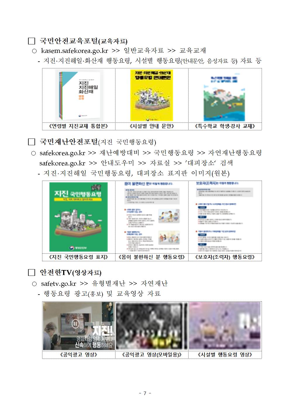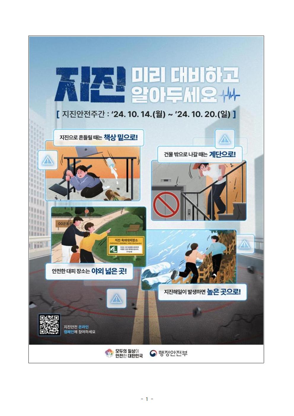 2024년 지진안전주간(10.14~20.) 운영 알림