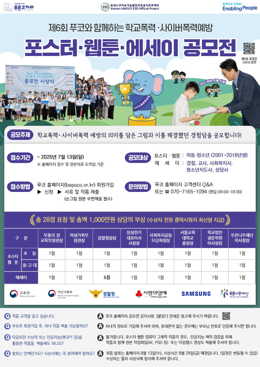 2025. 제6회 푸른코끼리 학교폭력.사이버폭력예방 공모전 안내