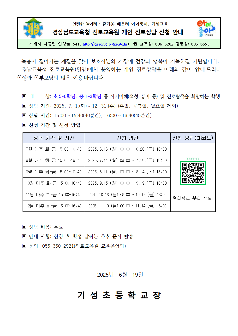 경상남도교육청 진로교육원 개인 진로상담 신청 안내
